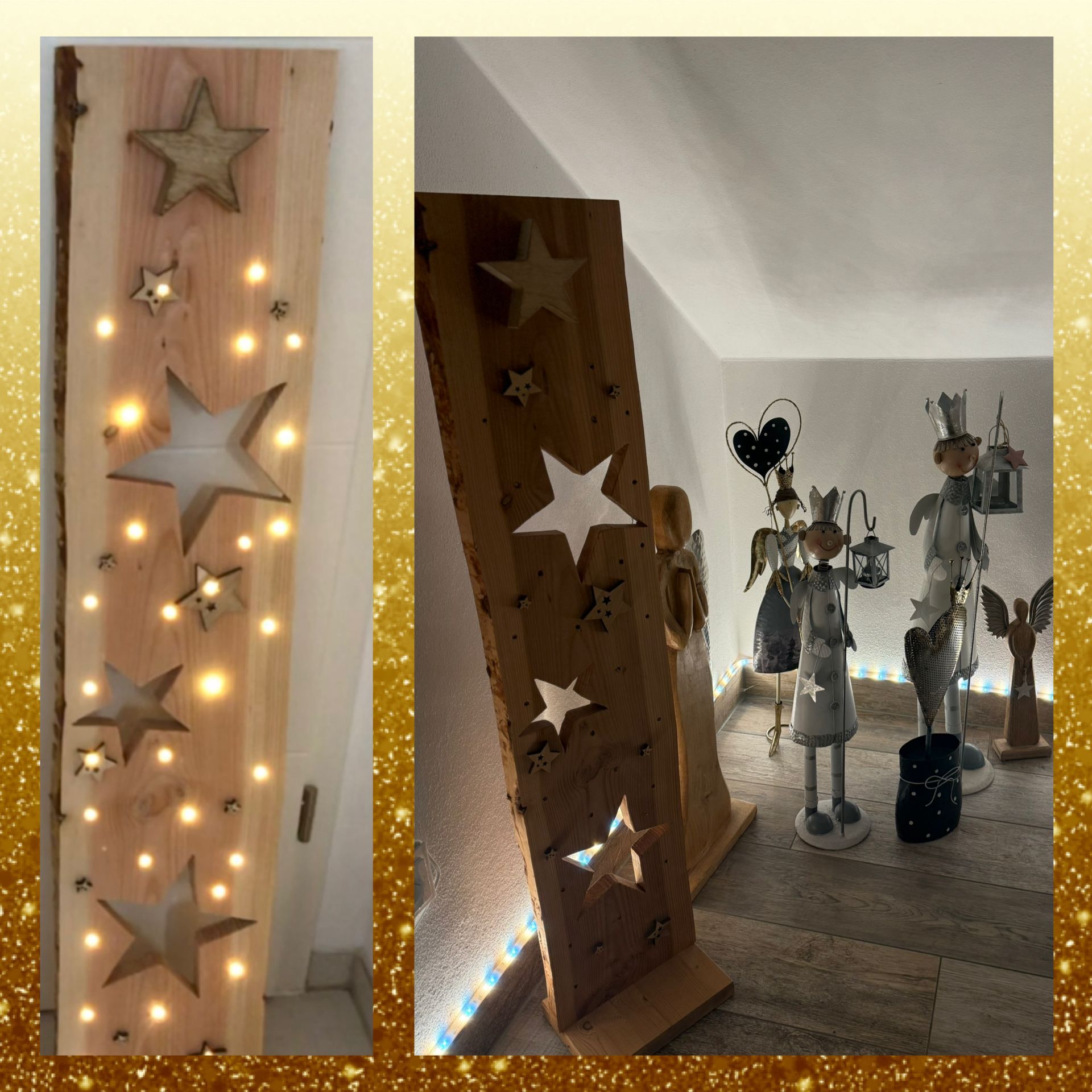 Alles begann mit einem beleuchteten Deko-Brett mit Sternen – und dem Wunsch, so etwas selbst zu gestalten. Der kreative Spaß daran führte dazu, dass ich mir nach und nach immer mehr Werkzeuge zulegte: einen Plotter, einen Laser, einen Sublimationsdrucker und weiteres diverses Werkzeug, um meine Ideen weiter umzusetzen.